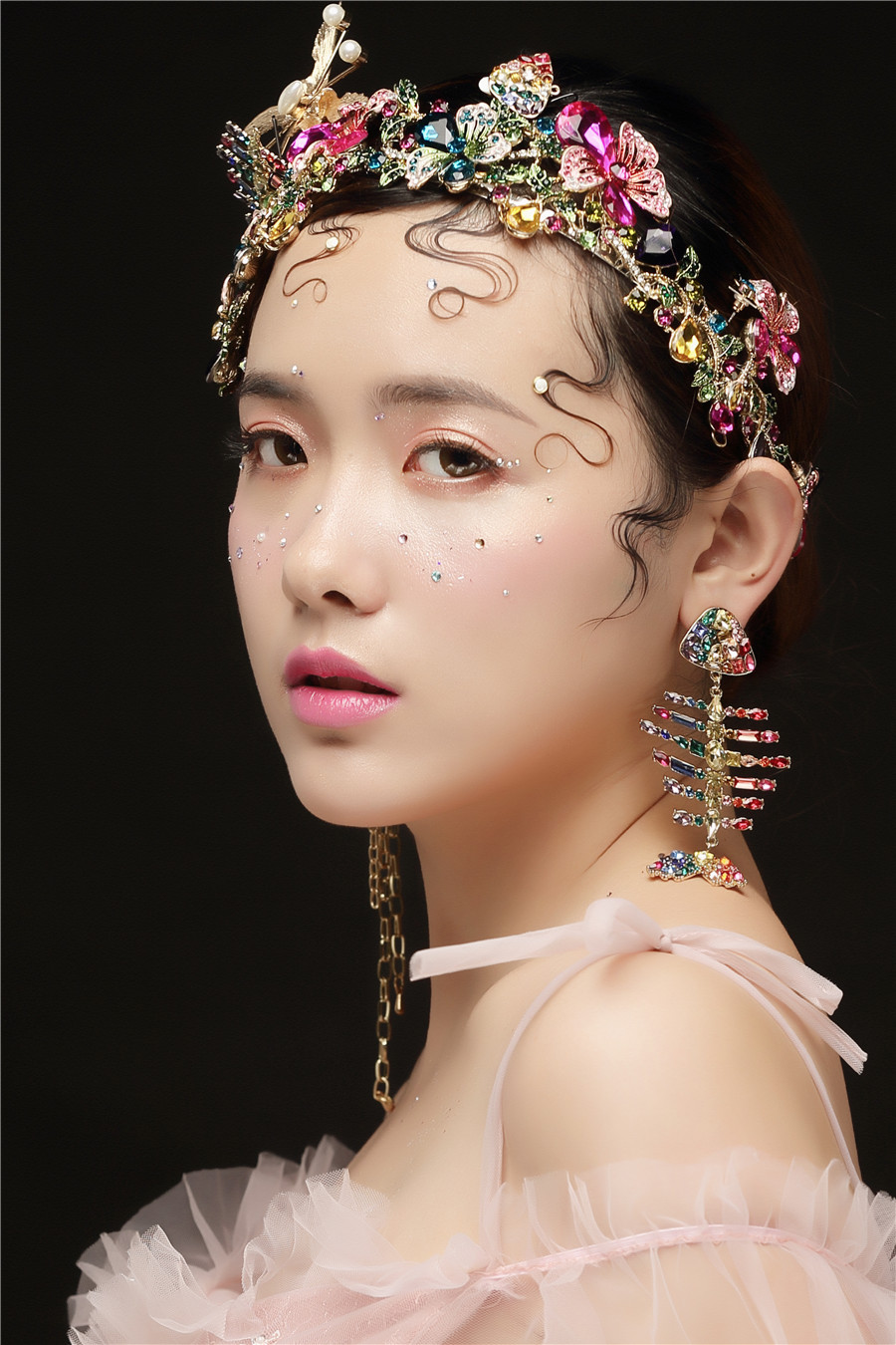 南寧化妝學校原創(chuàng)作品分享:美要流行于外表,更要浸透入骨,運用色彩創(chuàng)意,讓新娘曼妙靈氣,仿佛晨曦里落入人間的小仙女。