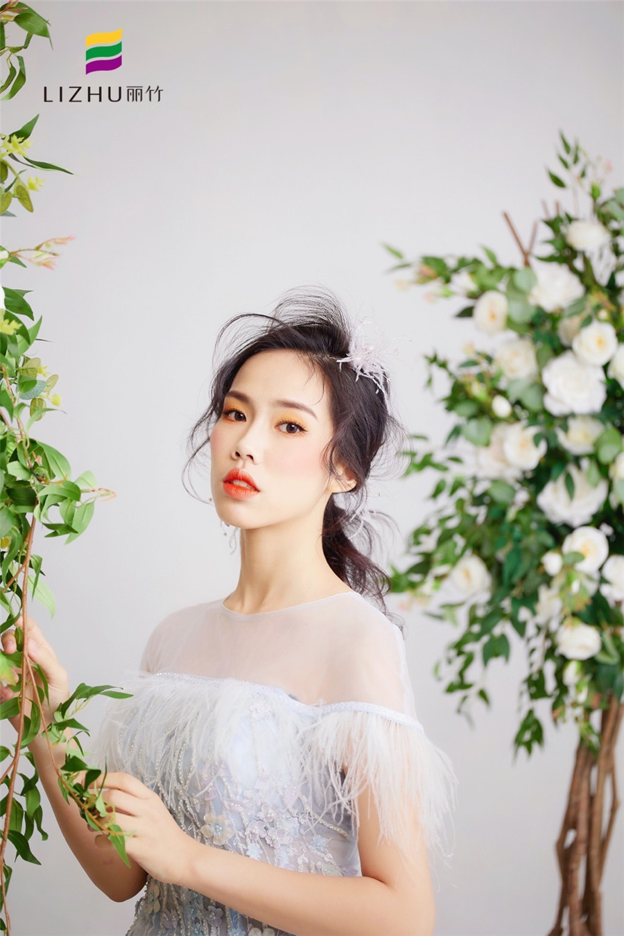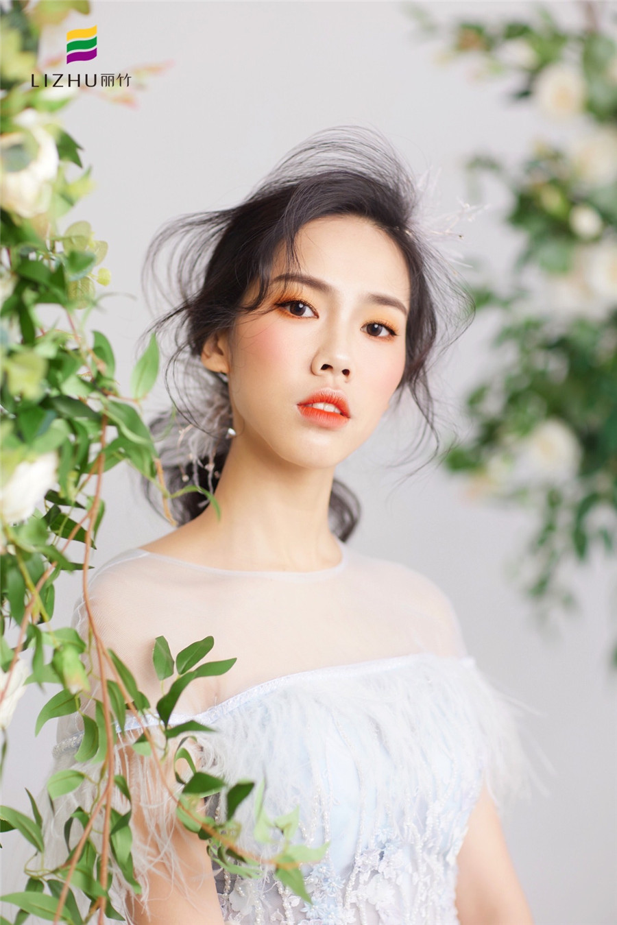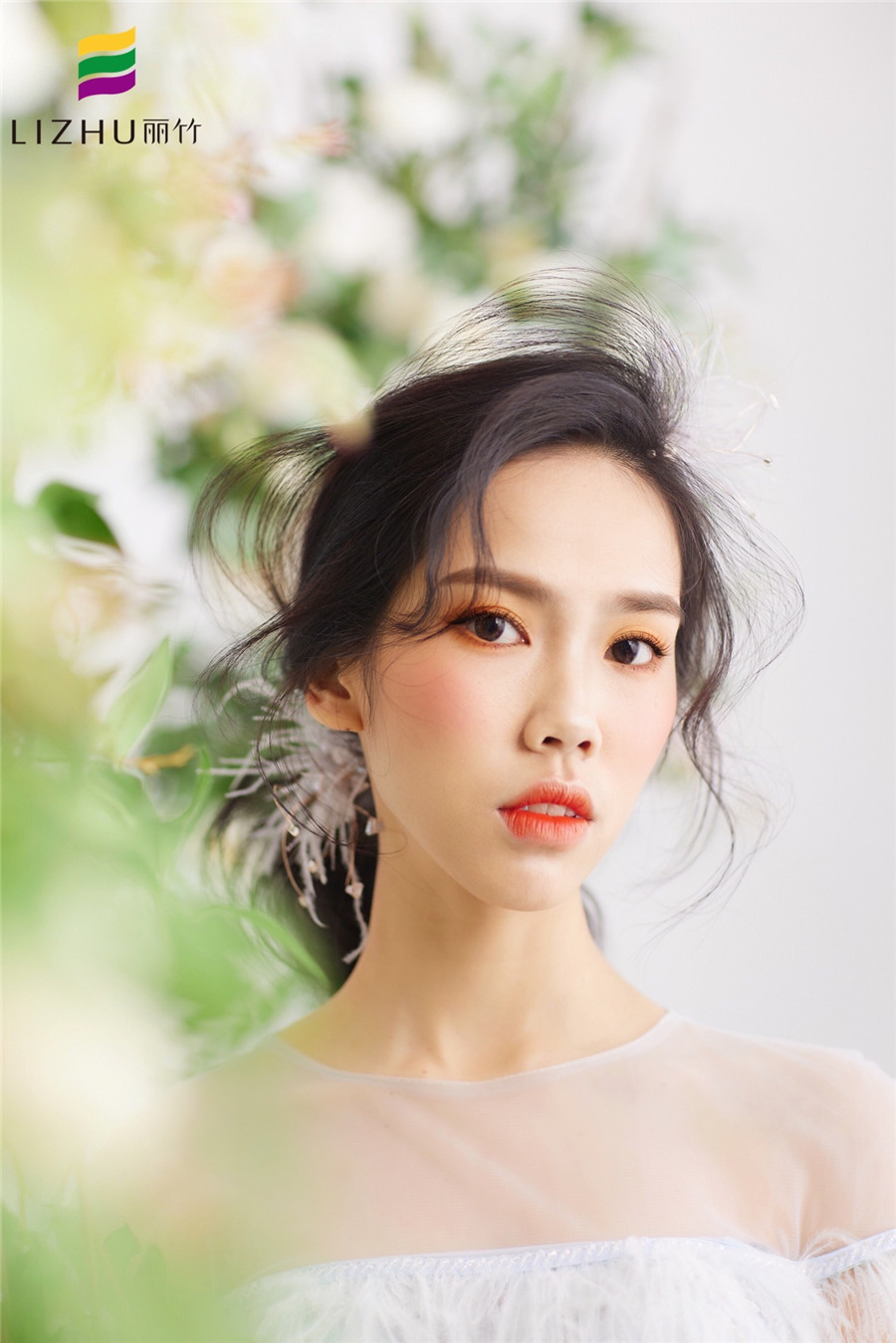 南寧化妝學校(麗竹學校)彩妝作品---抽絲紋理新娘造型:靈動隨意的抽絲盤發(fā),簡單干凈自然的妝容,優(yōu)雅中散發(fā)恬靜與美好,打造出清新嬌俏的感覺。