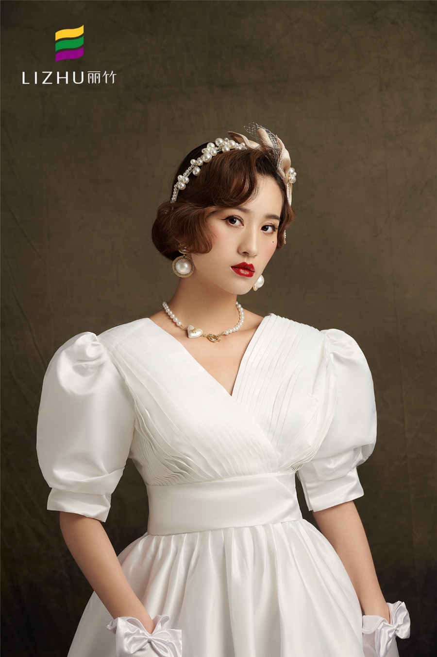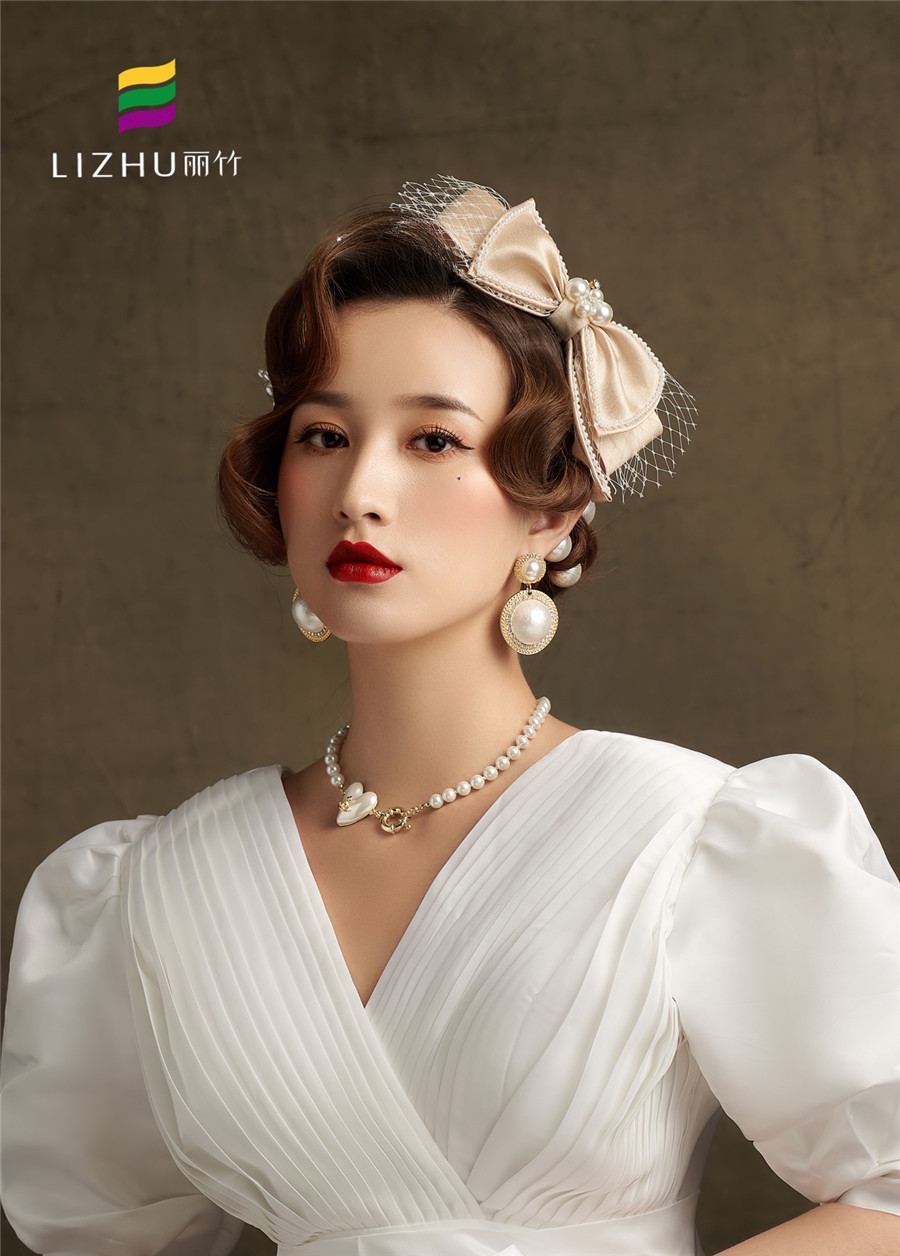 廣西化妝培訓(xùn)學(xué)校(麗竹化妝培訓(xùn)學(xué)校)作品---輕復(fù)古系列妝容造型:時尚優(yōu)雅的復(fù)古盤發(fā),佩戴香檳蝴蝶結(jié)頭飾點(diǎn)綴,畫上大氣動人麗人妝,穿上簡潔緞面氣質(zhì)婚紗,展現(xiàn)出既純潔又優(yōu)雅的獨(dú)有氣質(zhì)。