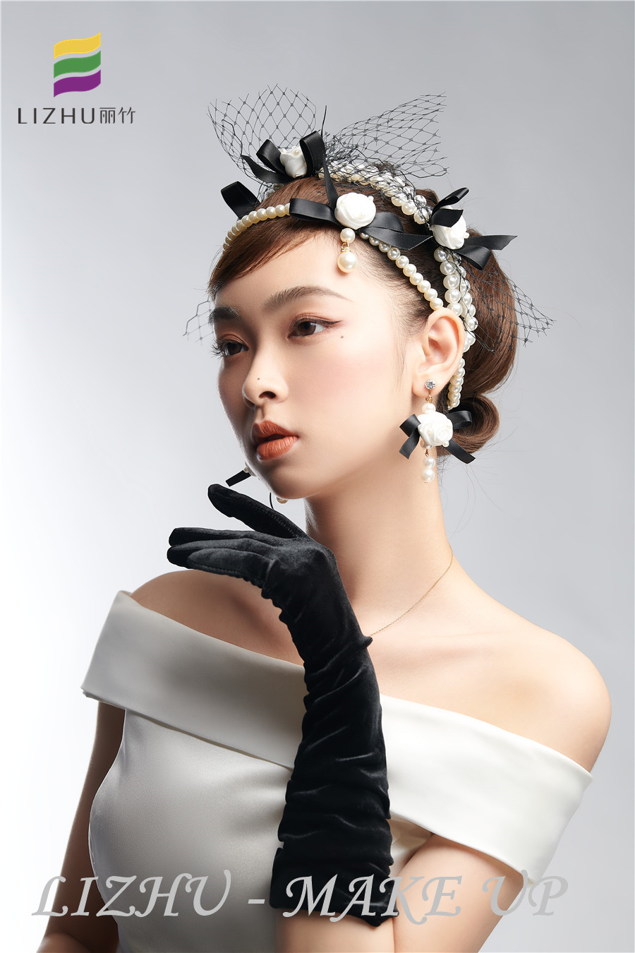 南寧彩妝美妝培訓(xùn)學(xué)校(麗竹彩妝學(xué)校)、南寧美妝培訓(xùn)機(jī)構(gòu)---簡約優(yōu)雅名媛造型:自然干凈的妝面打造輕薄裸妝感,簡約盤發(fā)佩戴網(wǎng)紗珍珠花朵頭飾,潔白無暇花朵耳飾清新亮眼,搭配白色綢緞面料半肩禮服,優(yōu)雅之中又不失少女的甜美??戳诉@些作品,想知道南寧有實(shí)力的化妝培訓(xùn)班,歡迎到麗竹彩妝學(xué)校了解課程。