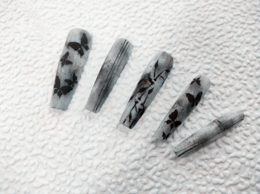 水墨蝴蝶美甲