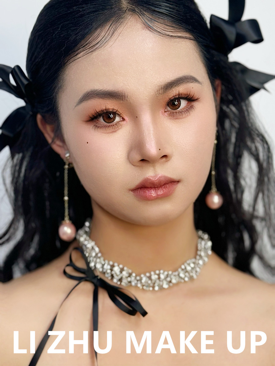 南寧化妝形象設(shè)計、南寧學(xué)化妝零經(jīng)驗、南寧化妝培訓(xùn)進修提升(麗竹化妝造型學(xué)校)作品---韓式甜美新娘:自然服貼的韓式底妝,粉橘色亮眼的眼妝和唇妝,成套蝴蝶結(jié)飾品點綴,讓身著粉色紗質(zhì)禮服造型更加甜美。