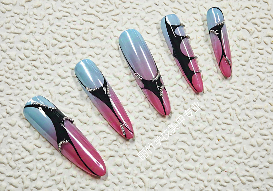 漸變線條美甲,廣西美甲學(xué)院實(shí)訓(xùn)作品