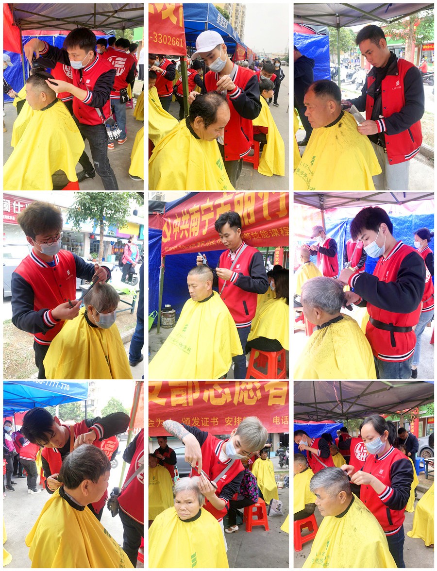 2023年3月31日,廣西美發(fā)師培訓(xùn)班到鑫利華小區(qū)為居民進(jìn)行公益理發(fā)
