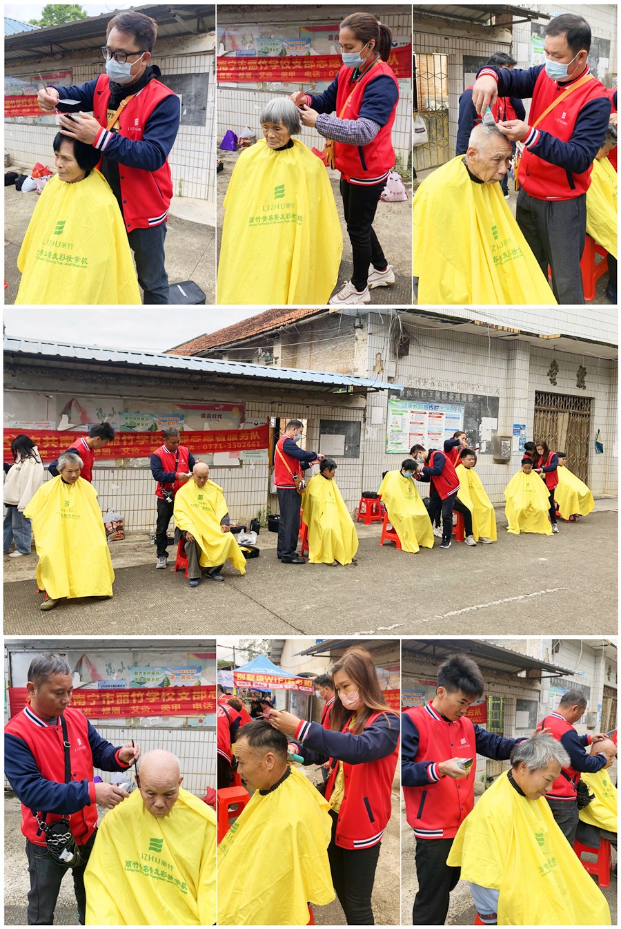 南寧美發(fā)實踐外出、南寧理發(fā)社會實踐:南寧美發(fā)學校排行前三的南寧美發(fā)職業(yè)技術學校-南寧美發(fā)培訓專業(yè)-麗竹美發(fā)學校志愿者服務隊立馬拿起理發(fā)工作,不顧嚴寒來到群眾身邊,為大家仔仔細細的進行理發(fā)活動。