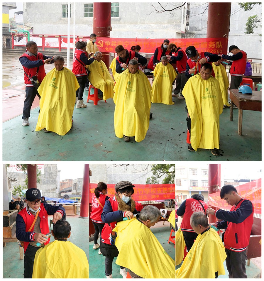 2023年12月18日,南寧美發(fā)培訓專業(yè)的同學們?yōu)榫用衩赓M理發(fā)