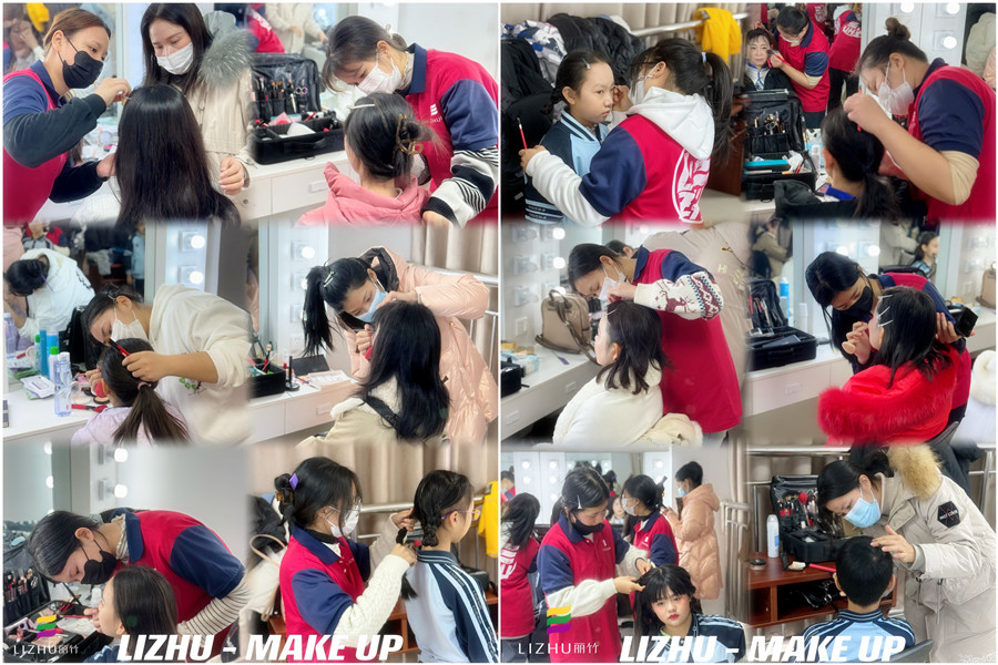 廣西化妝學校外出、廣西公益化妝活動:12月23日,廣西彩妝造型專業(yè)學校(麗竹彩妝培訓(xùn))受邀到南寧群眾藝術(shù)館,為在這里舉辦的“ 民盟南寧市委2024迎新文藝演出”的演藝人員們提供化妝服務(wù)。