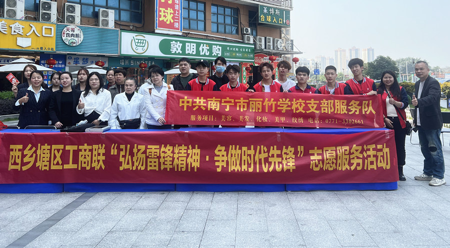 學(xué)雷鋒、南寧學(xué)雷鋒志愿者活動:今年是第61個“學(xué)雷鋒紀(jì)念日”,也是第25個“中國青年志愿者服務(wù)日”。3月5日,在黨支部的帶領(lǐng)下,南寧美容美發(fā)彩妝職業(yè)培訓(xùn)學(xué)校-南寧市麗竹職業(yè)培訓(xùn)學(xué)校志愿者服務(wù)隊奔赴到周邊城鎮(zhèn),以實際行動踐行雷鋒精神,展現(xiàn)新時代青少年的風(fēng)采。